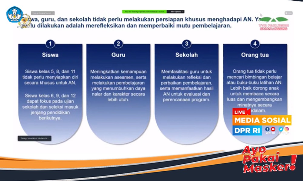 Dalam paparannya saat rapat kerja dengan Komisi X DPR RI secara virtual, Menteri Pendidikan dan Kebudayaan (Mendikbud) Nadiem Anwar Makarim mengungkap hal berikut: