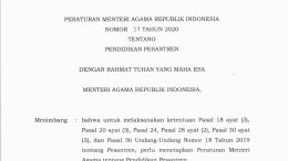PMA No. 31 Tahun 2020 Tentang Pendidikan Pesantren – Pondok pesantren, Dayah, Surau, Meunasah, atau sebutan lain, selanjutnya disebut pesantren adalah lembaga yag berbasis masyarakat dan didirikan oleh perseorangan, yayasan, organisasi masyarakat Islam, dan/atau masyarakat…